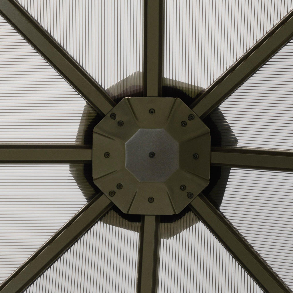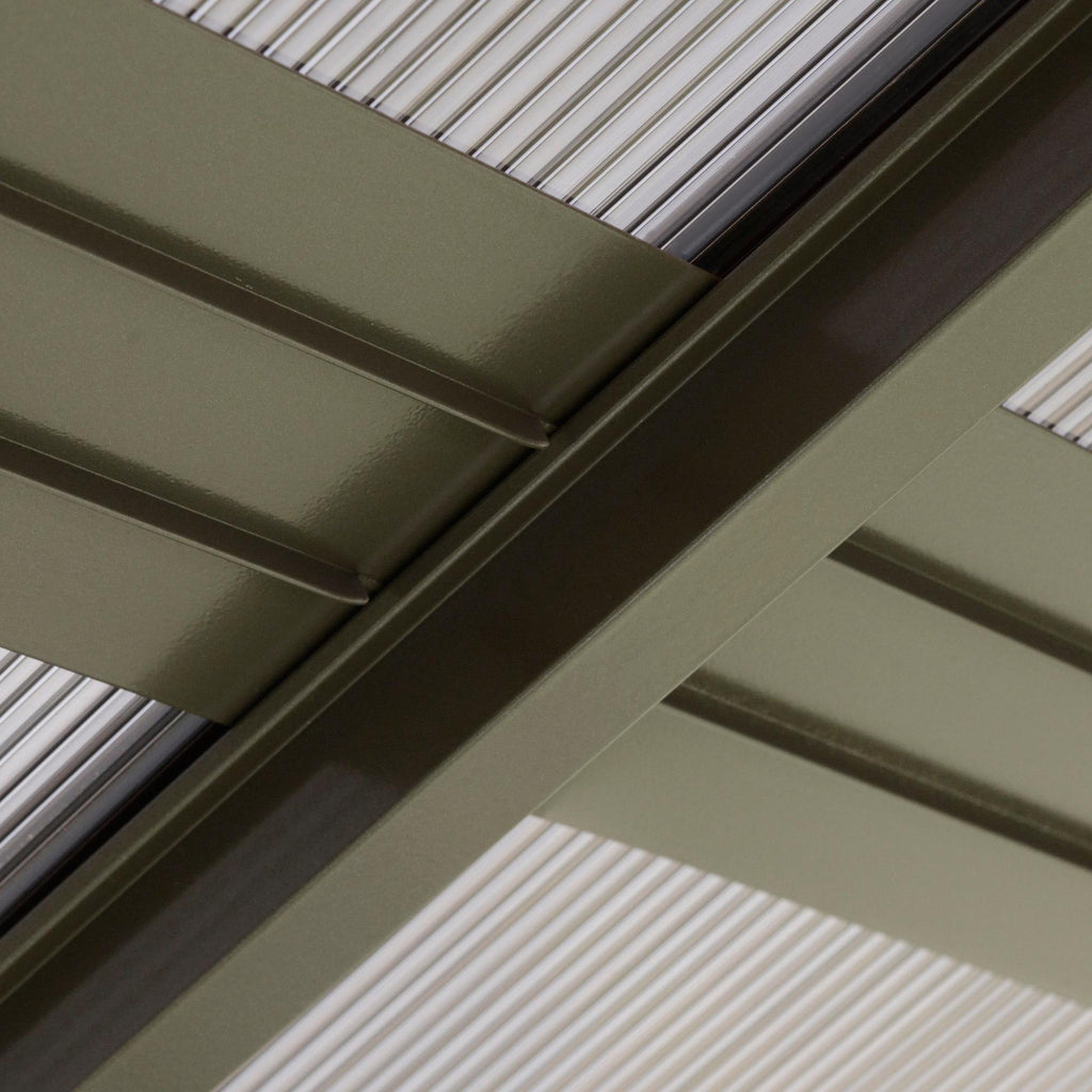 - TETTO IN POLICARBONATO: Il tetto a punta del gazebo è realizzato con un pannello in policarbonato per proteggere dai raggi UV, pioggia leggera e vento.