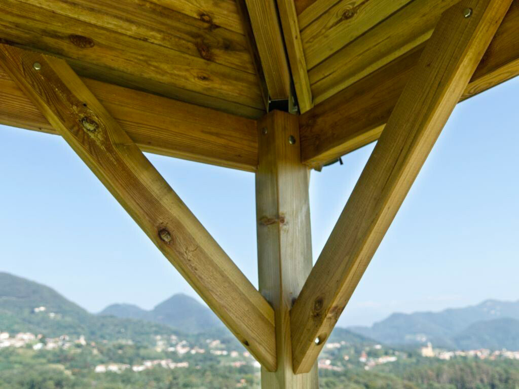 - Copertura con pannelli precomposti in pino impregnato in autoclave