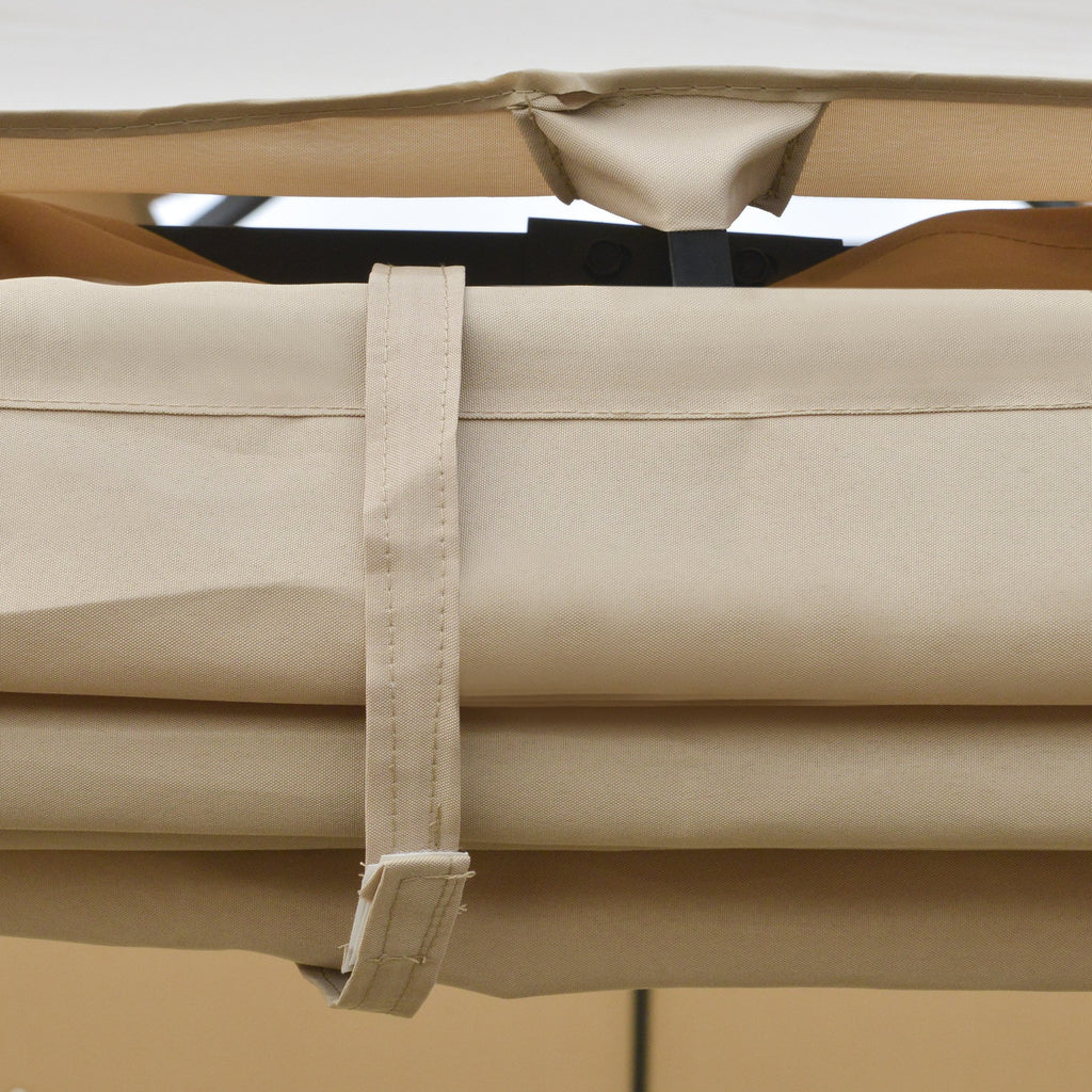 Porta un tocco di stile nel tuo giardino con questo gazebo pergola . Ampio e resistente, ha una robusta struttura in metallo e un tettuccio doppio in tessuto poliestere per un migliore ricircolo dell'aria. La copertura ha un telo estraibile che puoi usare per ampliare lo spazio d'ombra in giardino.