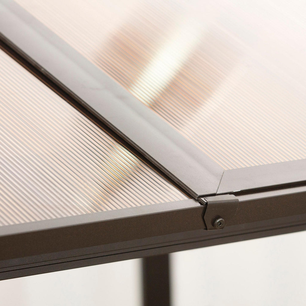 Vuoi goderti le belle giornate in giardino al riparo dal sole? La struttura robusta e stabile in lega di alluminio assicura un utilizzo in sicurezza e il tetto in policarbonato ti protegge efficacemente dal raggi UV. Il gazebo da giardino è ampio e permette di avere un grande spazio riparato in cui godersi l'aria aperta. Preparati all'arrivo della bella stagione con questo gazebo da esterno, sarà l'oasi perfetta per rilassarti con la famiglia e gli amici!