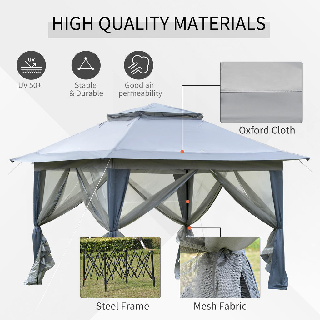 Gazebo da Giardino 3,64x3,64x2,94m in Acciaio e Tessuto Oxford Grigio
