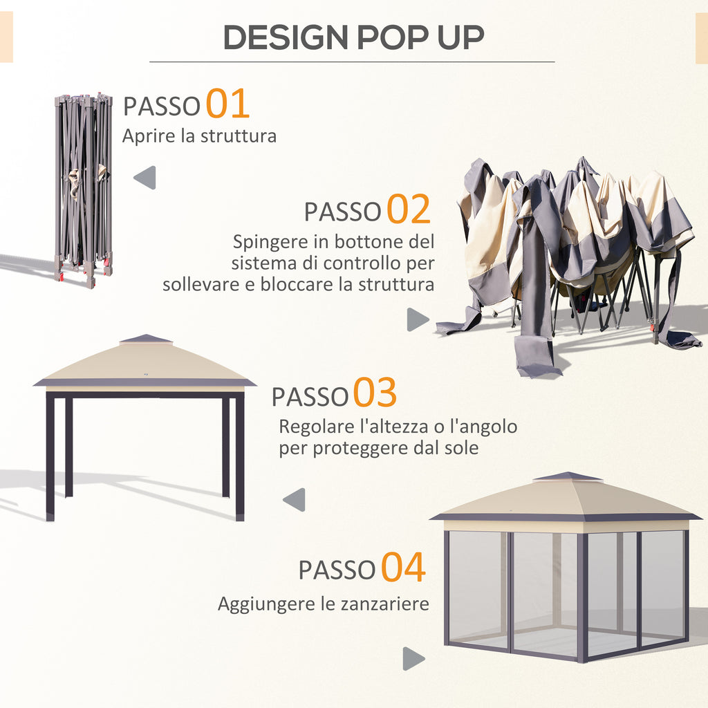 Gazebo da Giardino 330x330x288 cm con Zanzariera Beige