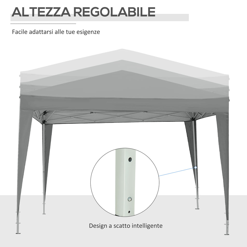 Il nostro gazebo da giardino pieghevole è l'alleato ideale per qualsiasi evento all'aria aperta. La struttura offre un'ombra fresca e un ambiente confortevole, mentre il telaio pieghevole permette di prepararlo o riporlo in poco tempo. Questo gazebo pieghevole è costruito in tubi d'acciaio rivestiti con una copertura impermeabile in tessuto Oxford resistente ai raggi UV. Inoltre, dispone di 4 pannelli laterali, di cui 2 con apertura con cerniera e 2 con finestre. Gazebo da giardino versatile ideale per eventi all'aperto o feste, con struttura pieghevole. Gazebo pieghevole realizzato in tessuto Oxford ad alta resistenza a raggi UV. Struttura robusta in tubi d'acciaio verniciati a polvere. Tendone per feste dotato di 4 pannelli laterali, di cui 2 con apertura con cerniera e 2 con finestre. La confezione include 4 corde e 8 picchetti per il fissaggio al terreno e una sacca per il trasporto. Facile da montare. Non esporre il gazebo da esterno a condizioni meteorologiche particolarmente avverse.