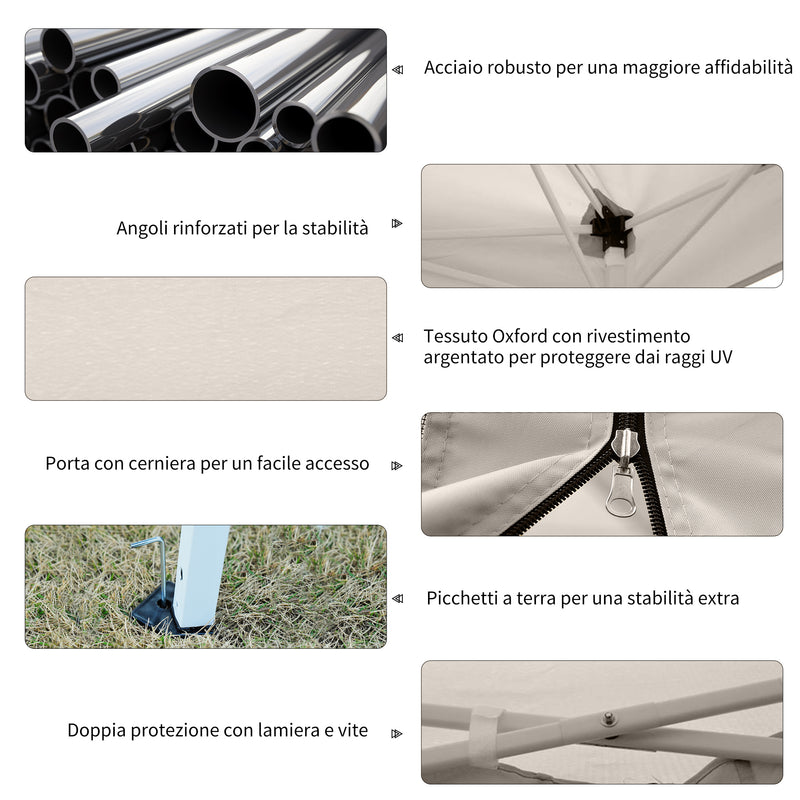 Gazebo da Giardino 3x3m in Acciaio Pareti Rimovibili Tessuto Oxford Crema