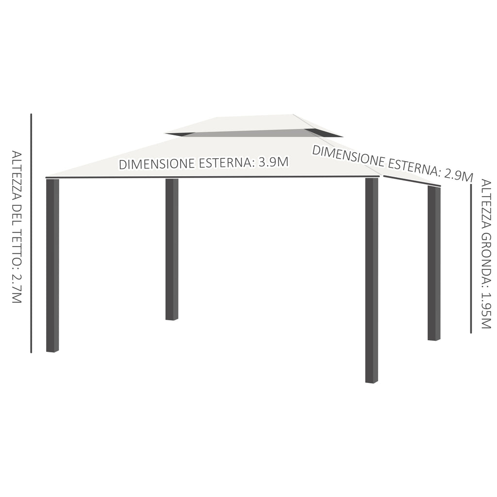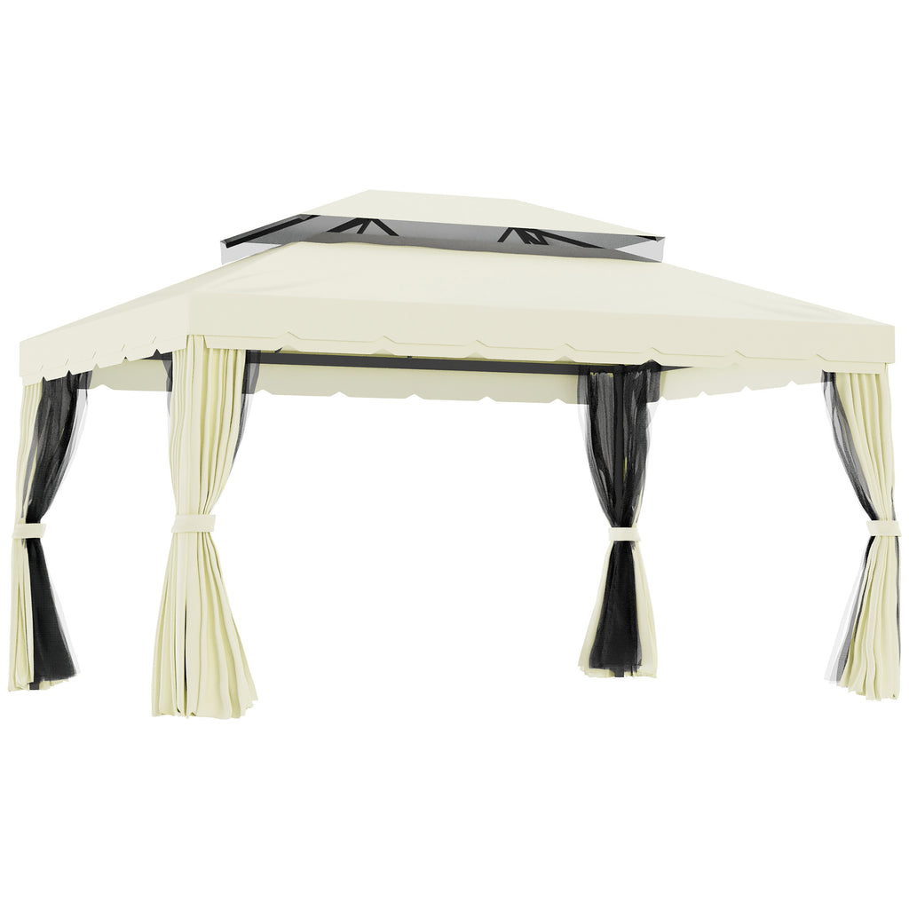 Gazebo da Giardino 3x4 m con Zanzariere e Doppio Tetto Klaus Bianco Crema