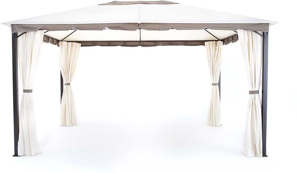 Gazebo da Giardino 3x4 m in Ferro con Tende Roma Ecrù