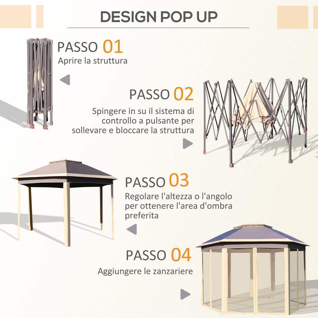 Gazebo da Giardino 405x340x285 cm con Zanzariera Beige