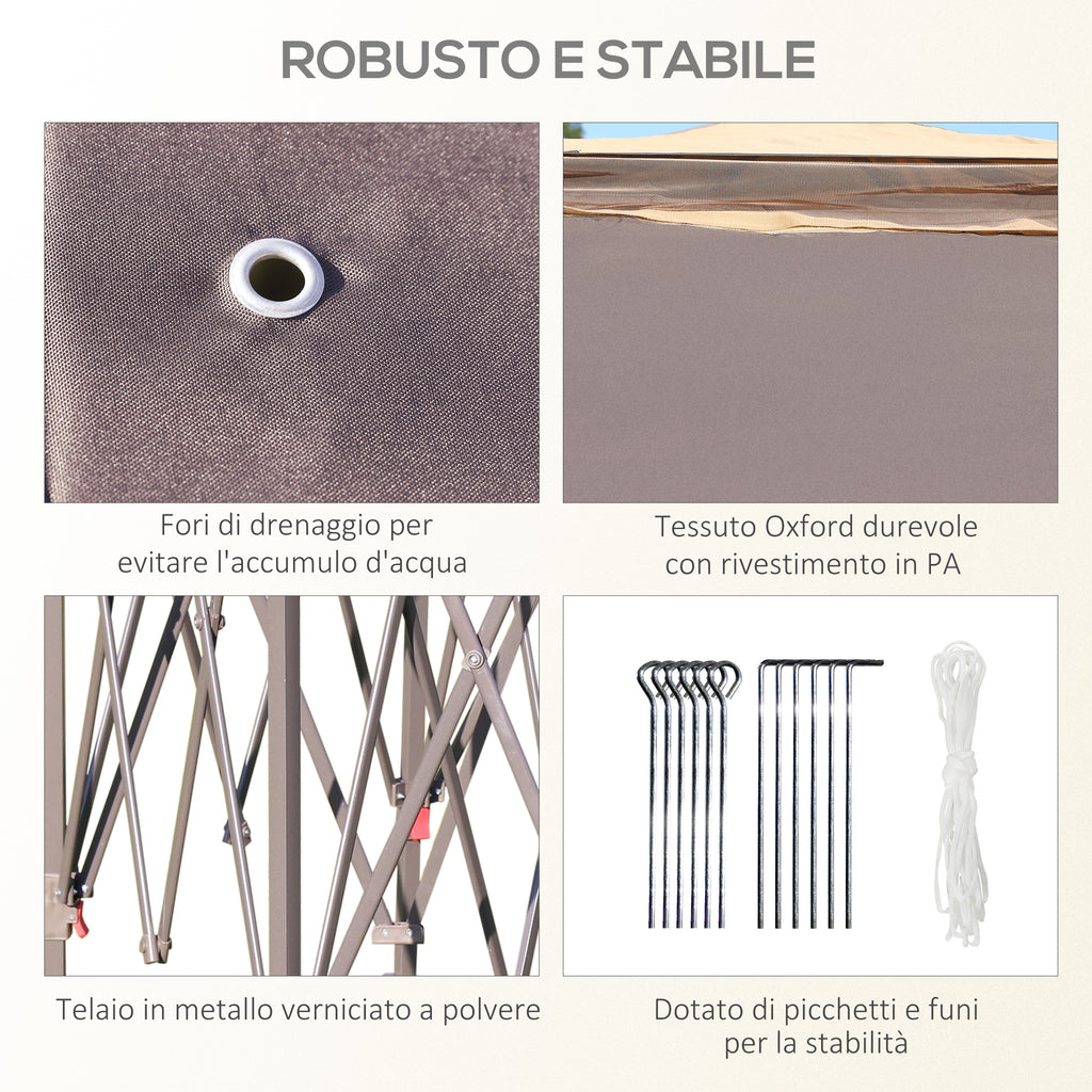 - ALTEZZA REGOLABILE E FACILE DA TRASPORTARE: L'altezza del gazebo da esterno può essere regolata su 3 diversi livelli. Inoltre, il design del gazebo pieghevole con struttura in metallo ti permette di smontarlo e riporlo in modo pratico nella sacca di trasporto inclusa.