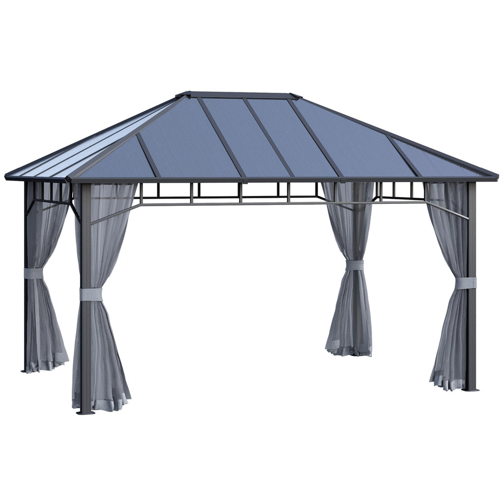 Aggiungi un tocco elegante a qualsiasi spazio esterno con questo gazebo da giardino 4 x 3m, un perfetto riparo dal sole per ogni occasione! Il tetto in policarbonato protegge dai raggi UV, mentre le zanzariere removibili offrono versatilità e ti permettono di creare un ambiente aperto e arioso. Tu e i tuoi ospiti sarete liberi di rilassarvi e riposarvi sotto l'ombra fresca del gazebo.