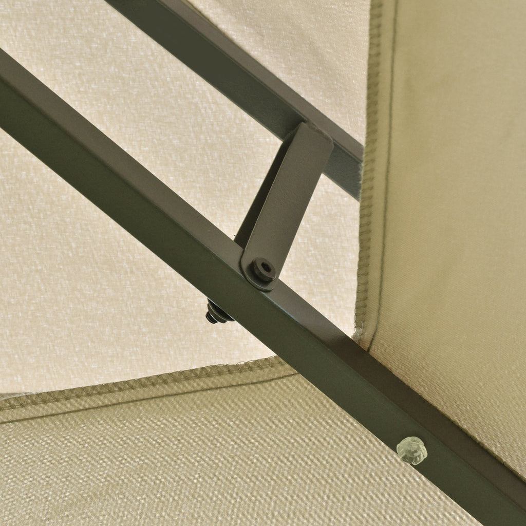 - DOPPIO TETTUCCIO: Questo gazebo da giardino ha un doppio tettuccio per favorire un corretto ricircolo dell'aria all'interno della struttura. La copertura è costruita in tessuto poliestere con rivestimento in PA ed è dotata di 8 fori per il drenaggio dell'acqua piovana.