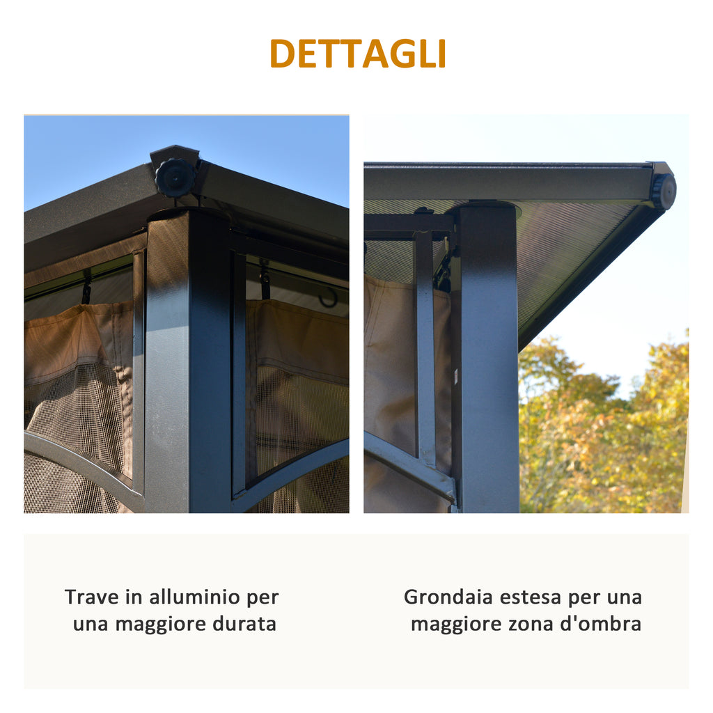 Gazebo da Giardino con Zanzariera 3,6x3m Tetto in Policarbonato Marrone