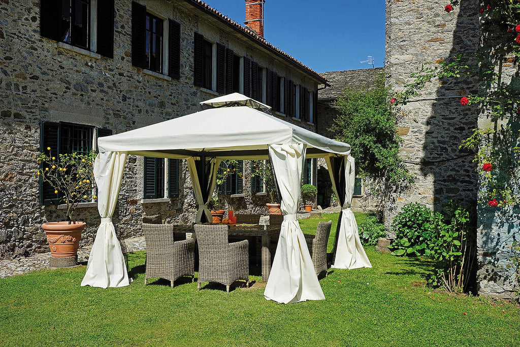 Gazebo da Giardino in Alluminio Quadrato 3X3m Vorghini Blind Ecrù con Tende Laterali