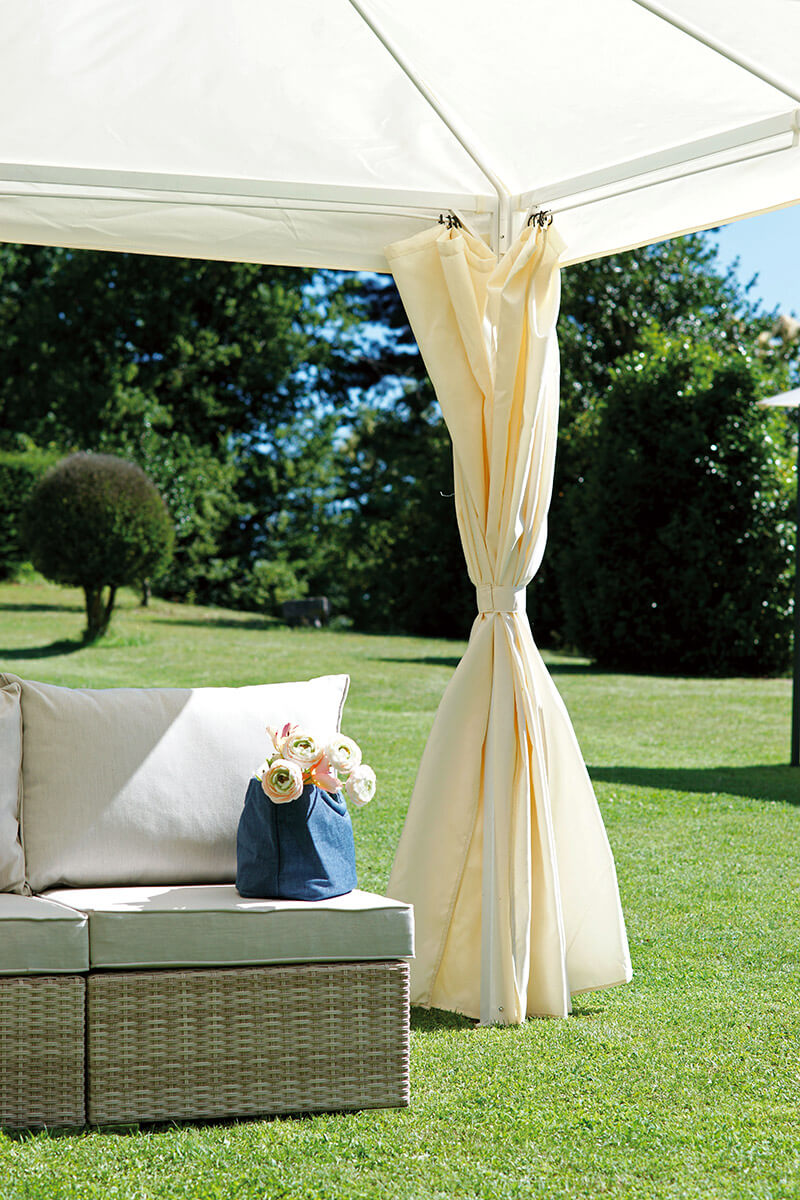 Gazebo da Giardino in Ferro 3x3m con Tende Vorghini Ecrù
