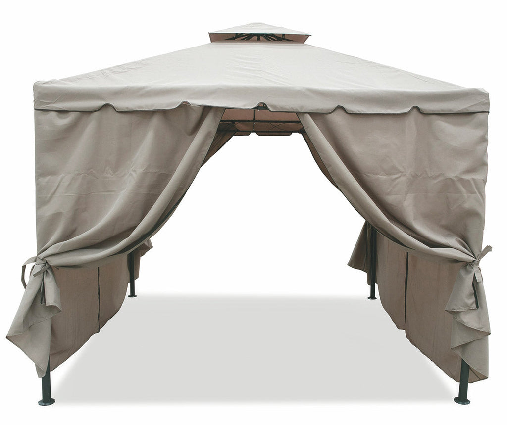 Scegliere un gazebo con tenda per il proprio giardino vuol dire creare un vero e proprio spazio di comfort al riparo dal sole, adatto a momenti di convivialità ed eventi. Le tende poste ad ogni angolo possono essere aperte e richiuse in base alle esigenze grazie ai pratici nastri di cui sono dotate. Il foro di aerazione posto all'estremità riduce l'impatto del vento e permette un'adeguata circolazione del calore.