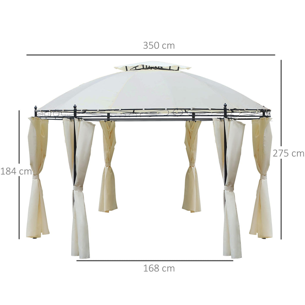 Gazebo da Giardino Ø3,5x2,75m con Tende in Acciaio e Poliestere Bianco