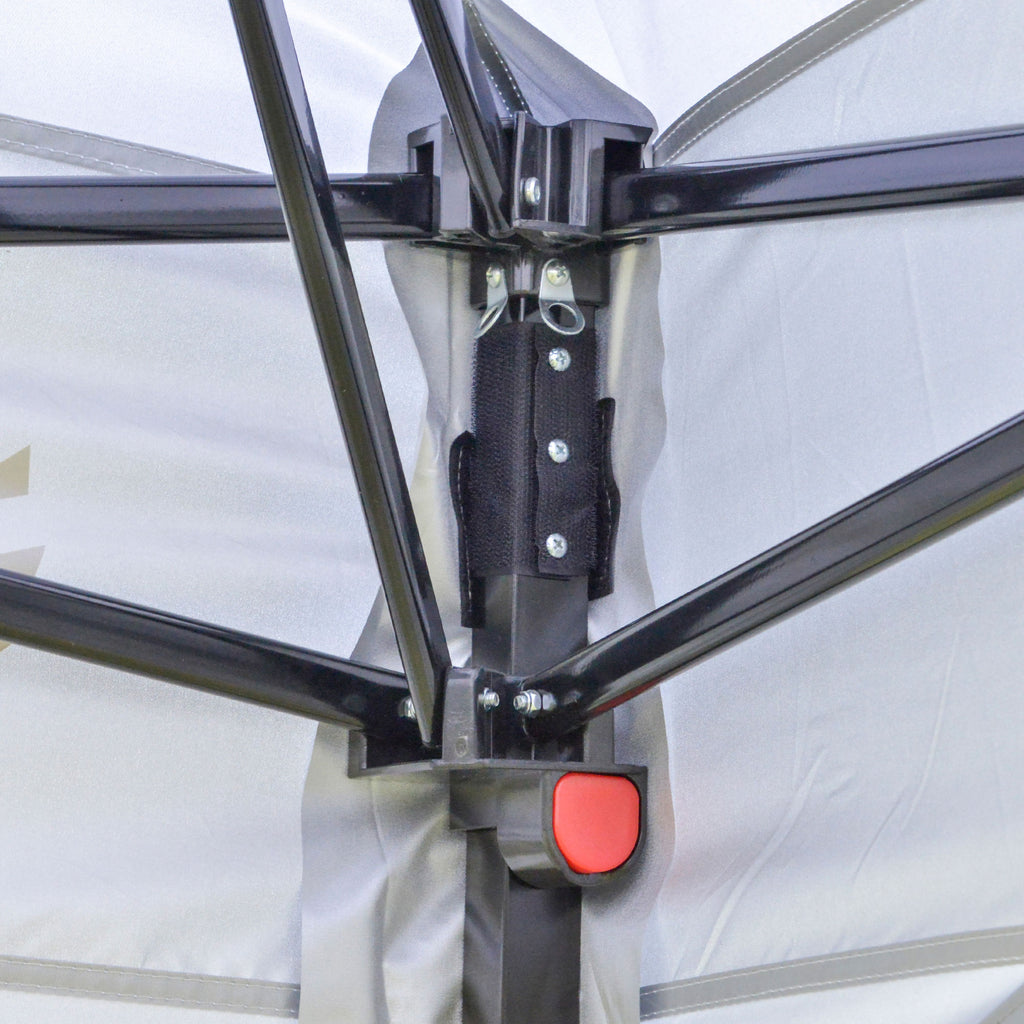 - GAZEBO PIEGHEVOLE & POP UP: Grazie alla serratura nella parte centrale permette puoi aprire e richiudere il gazebo con un clic. Usando i pulsanti rossi presenti sulle gambe del gazebo puoi regolare l'altezza della struttura su tre diversi livelli.