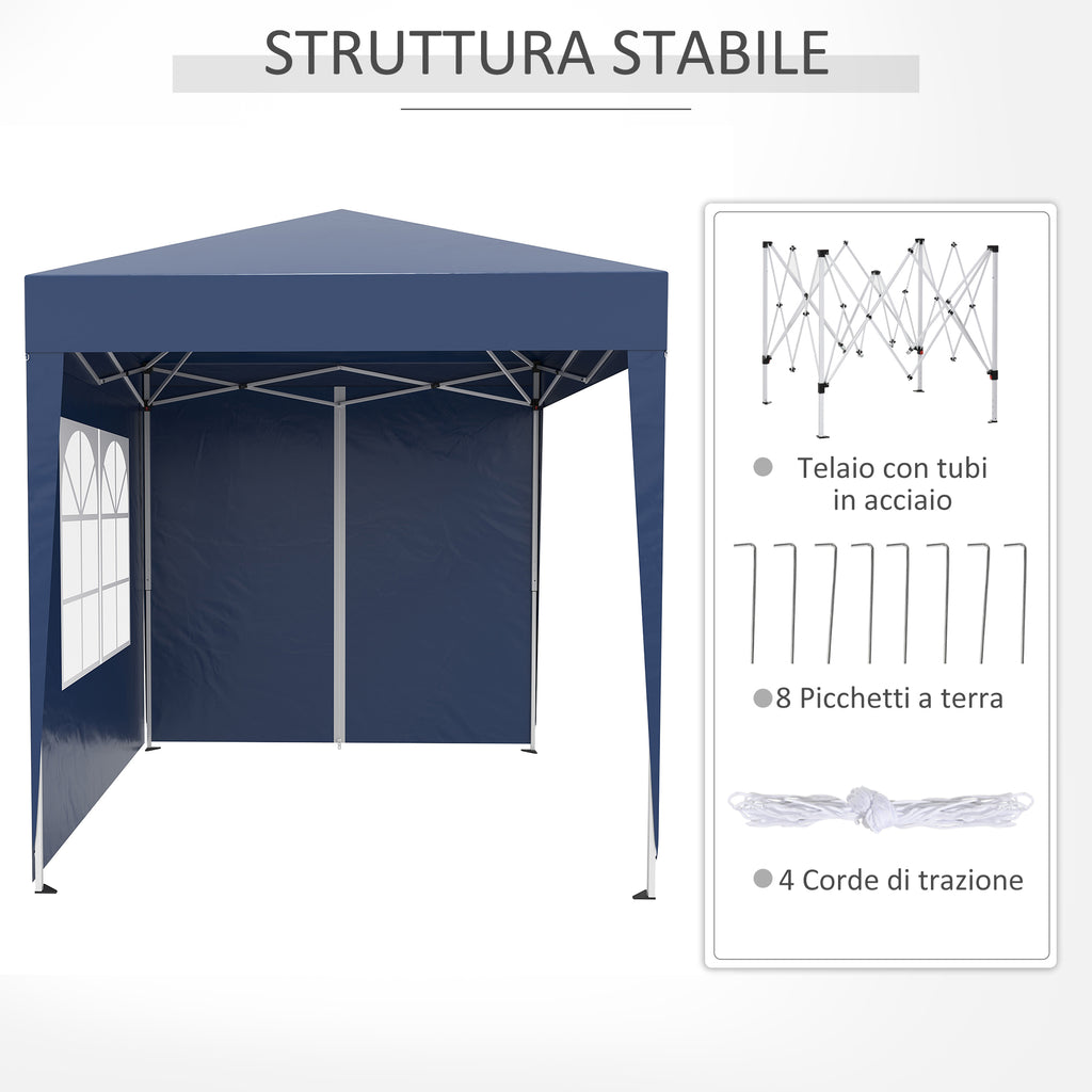 Gazebo Pieghevole Pop Up 2x2m in Poliestere e Acciaio Blu