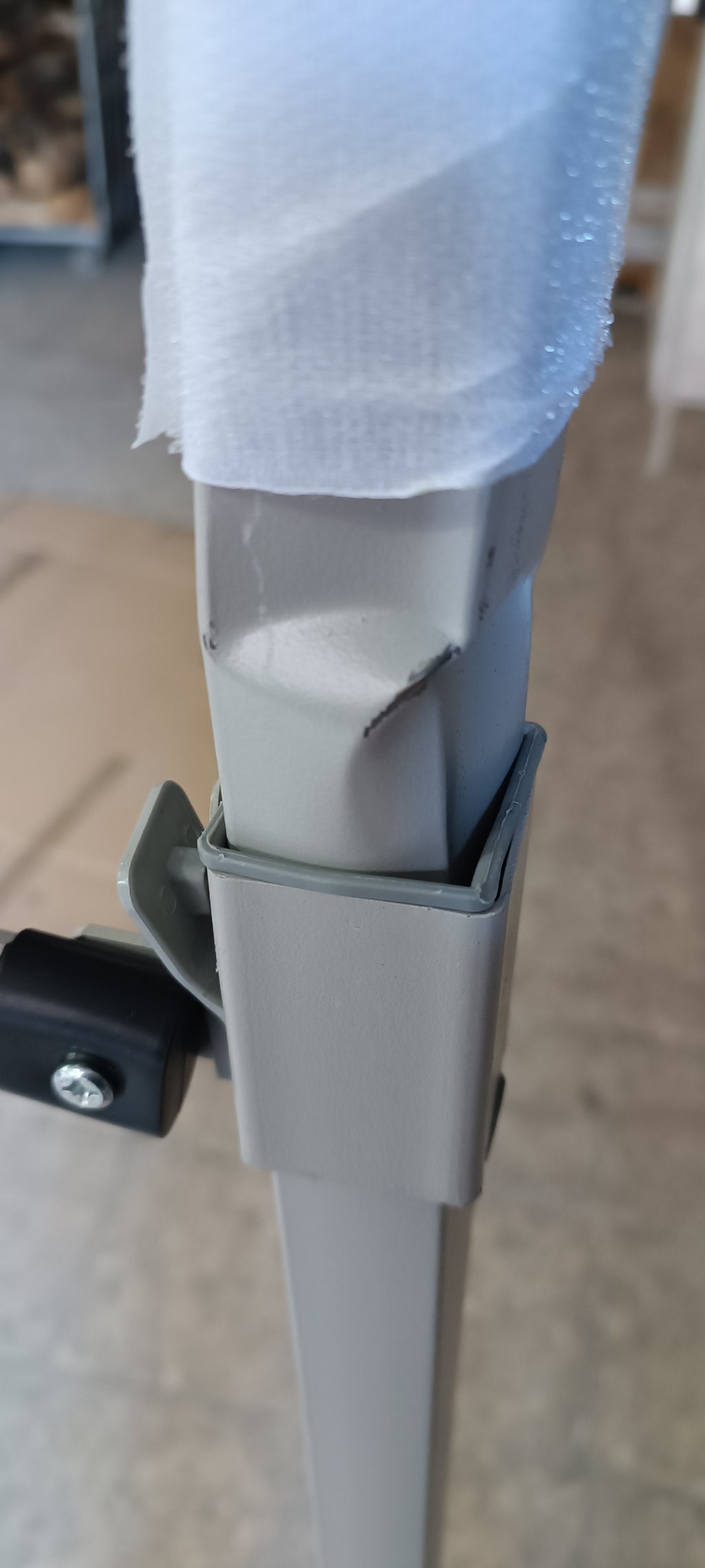 - Le aste verticali, a sezione quadrata, sono telescopiche a 2 pezzi scorrevoli verso il basso con la semplice pressione di un pulsante