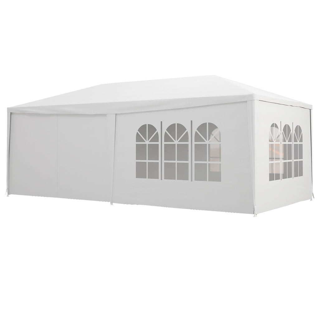 Gazebo Tendone per Feste con Pareti Laterali Rimovibili Porte e Finestre 6x3m Bianco