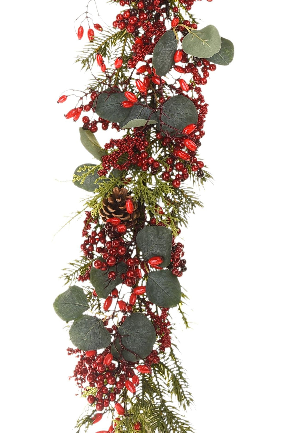 Ghirlanda con Eucalipto Lunghezza 178 cm Rosso/Verde