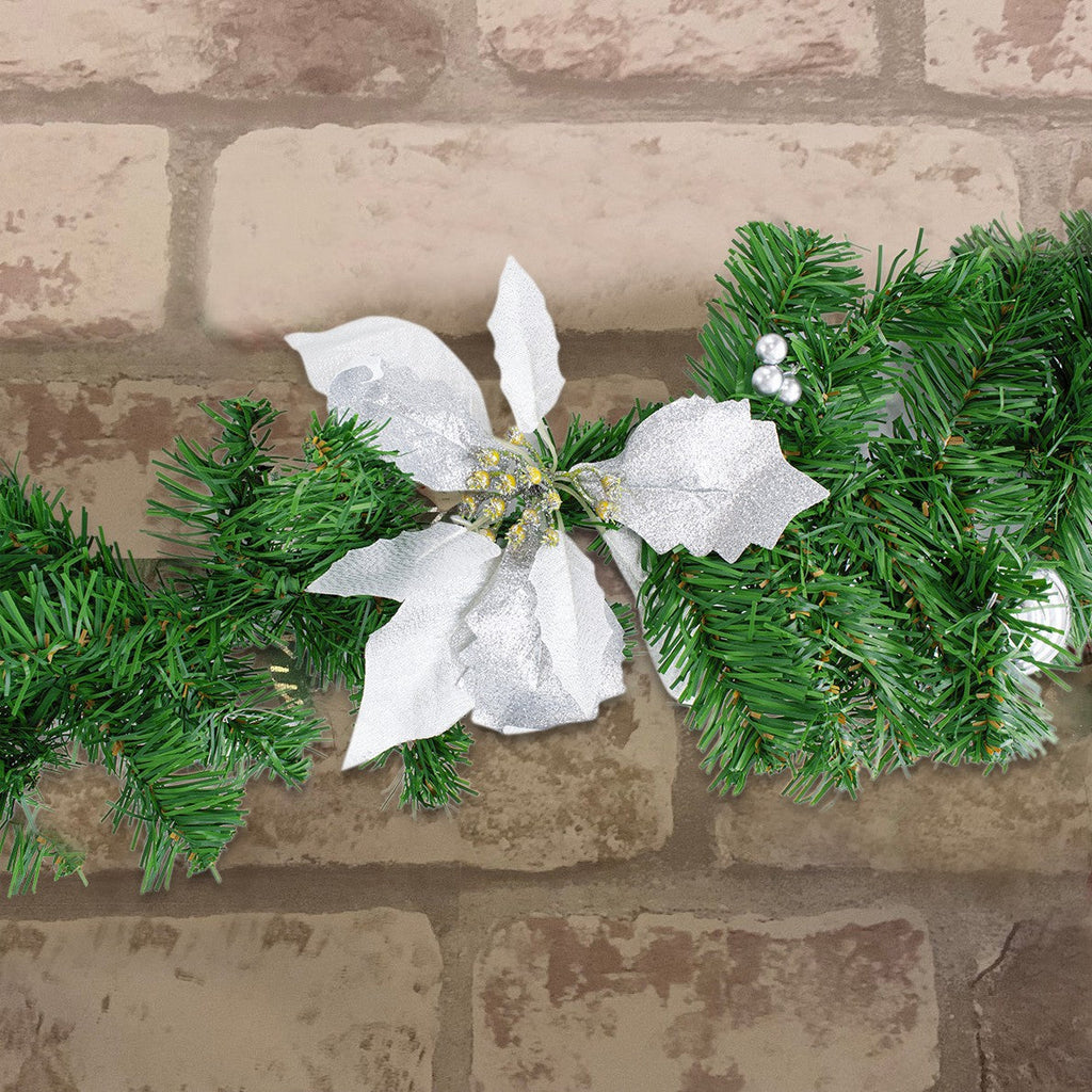 Ghirlanda Natalizia Ramo di Albero 2m con Agrifoglio e Decori Argento
