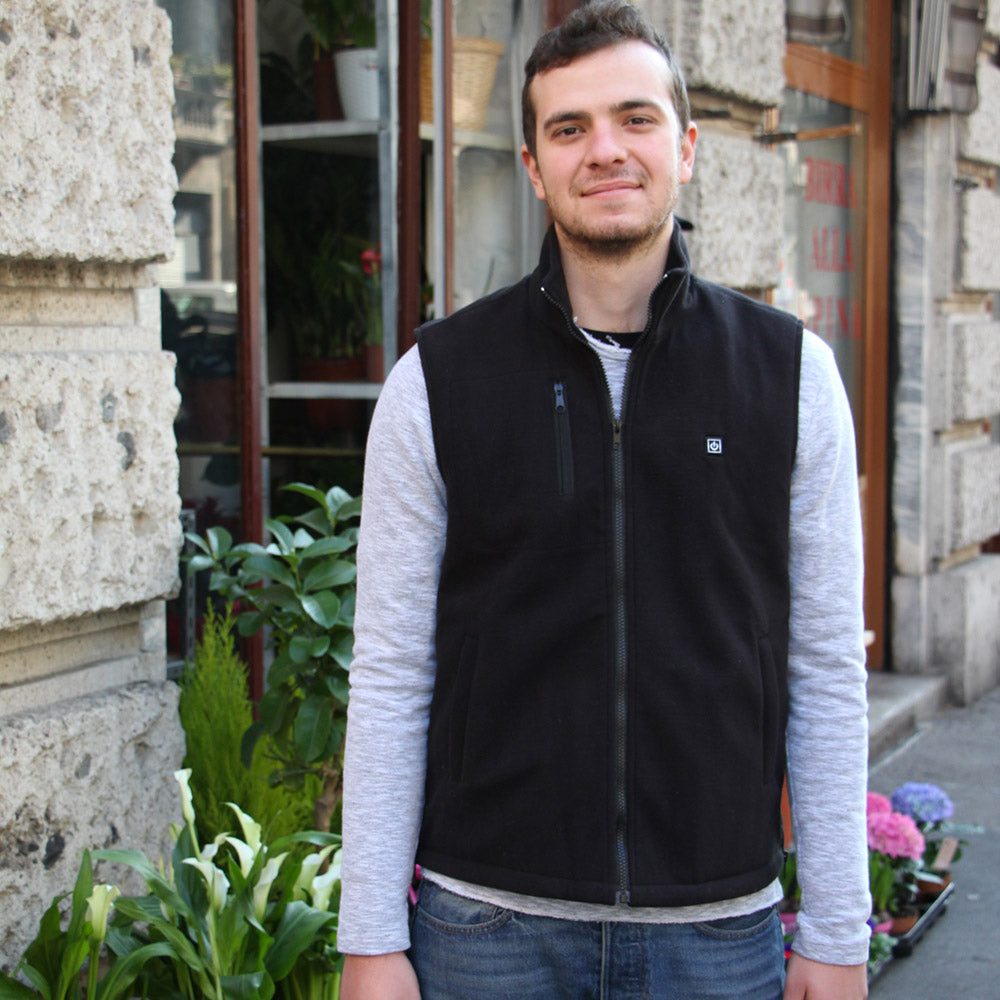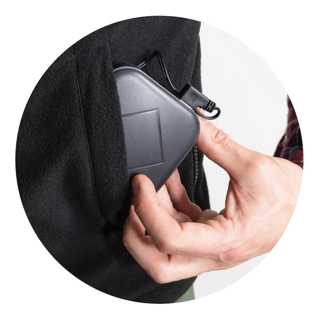 Si attiva con un click, senza aspettare che l'ambiente si riscaldi e senza disperdere inutilmente il calore: basta collegare una semplice power bank nella tasca sinistra e premere il pulsante di attivazione del calore.