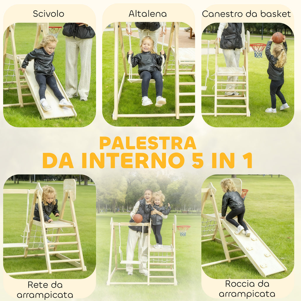 • GIOCO 5 IN 1: Questo set arrampicata per bambini è dotato di un'altalena, uno scivolo, un canestro e una parete da arrampicata per garantire ore di intrattenimento in cameretta o in altri spazi domestici