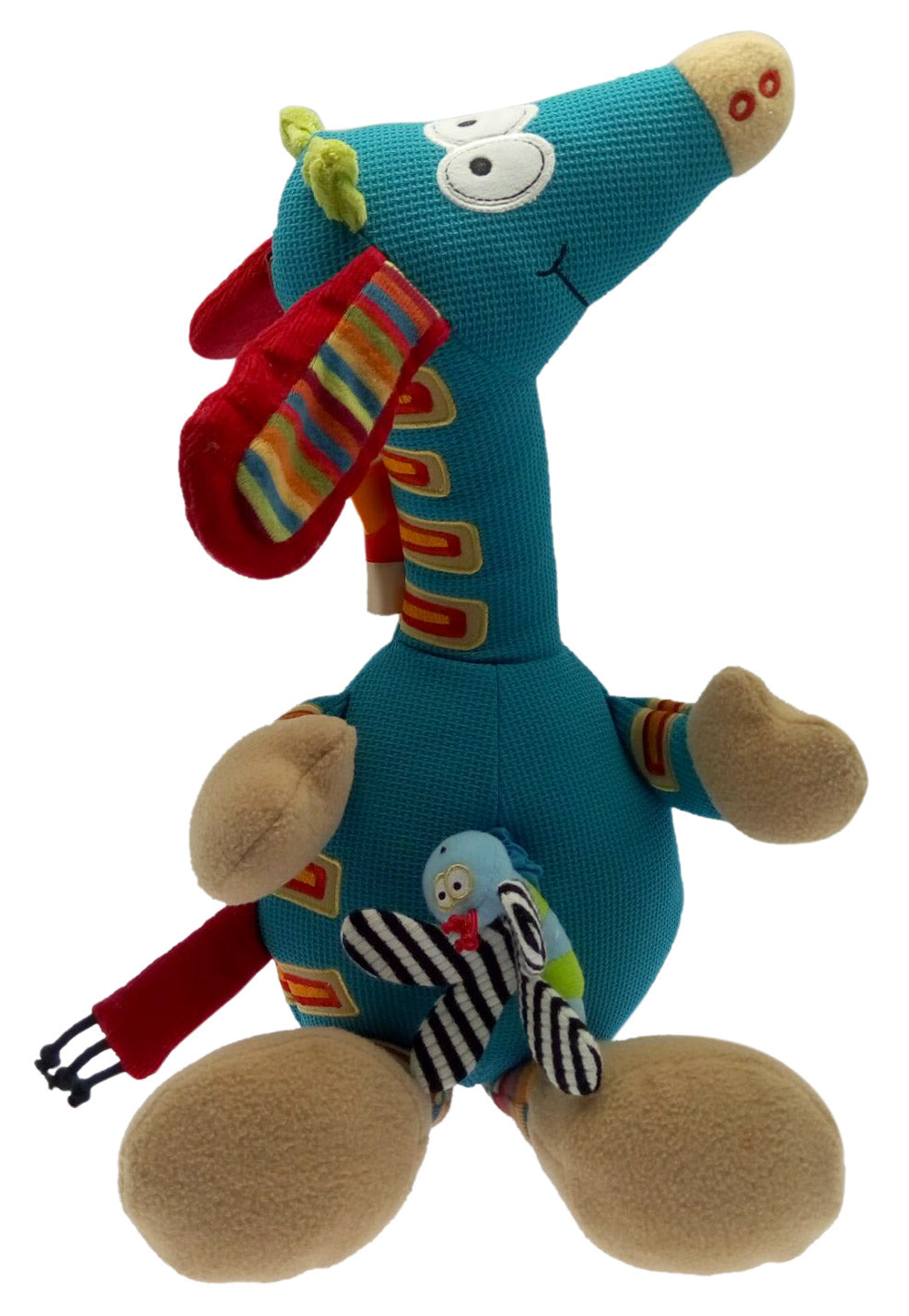 La grande Giraffa musicale è perfetta per calmare un bambino vivace prima della nanna. Questo grazioso personaggio ha il suo massaggiagengive Dolce, brillanti colori a contrasto in materiali interessanti, e la sua amica libellula.