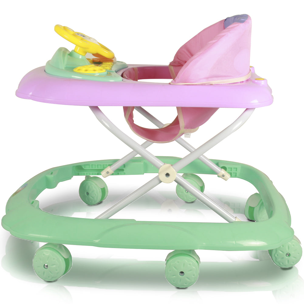1 x Girello Bambini per Primi Passi Chiusura Salvaspazio e Volante Interattivo Verde