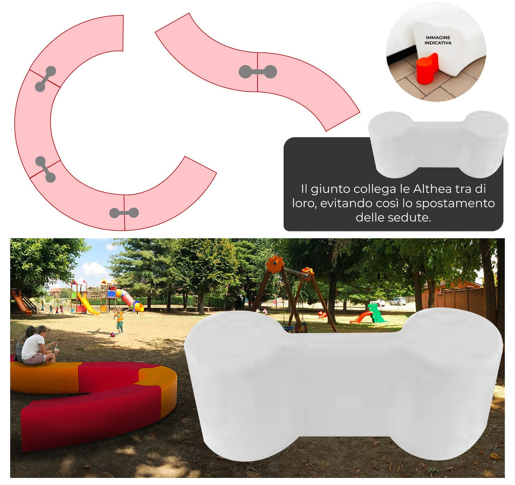 Giunto per le Panche da Esterno Arkema Althea. Il giunto collega le Althea tra di loro, evitando così lo spostamento delle sedute.