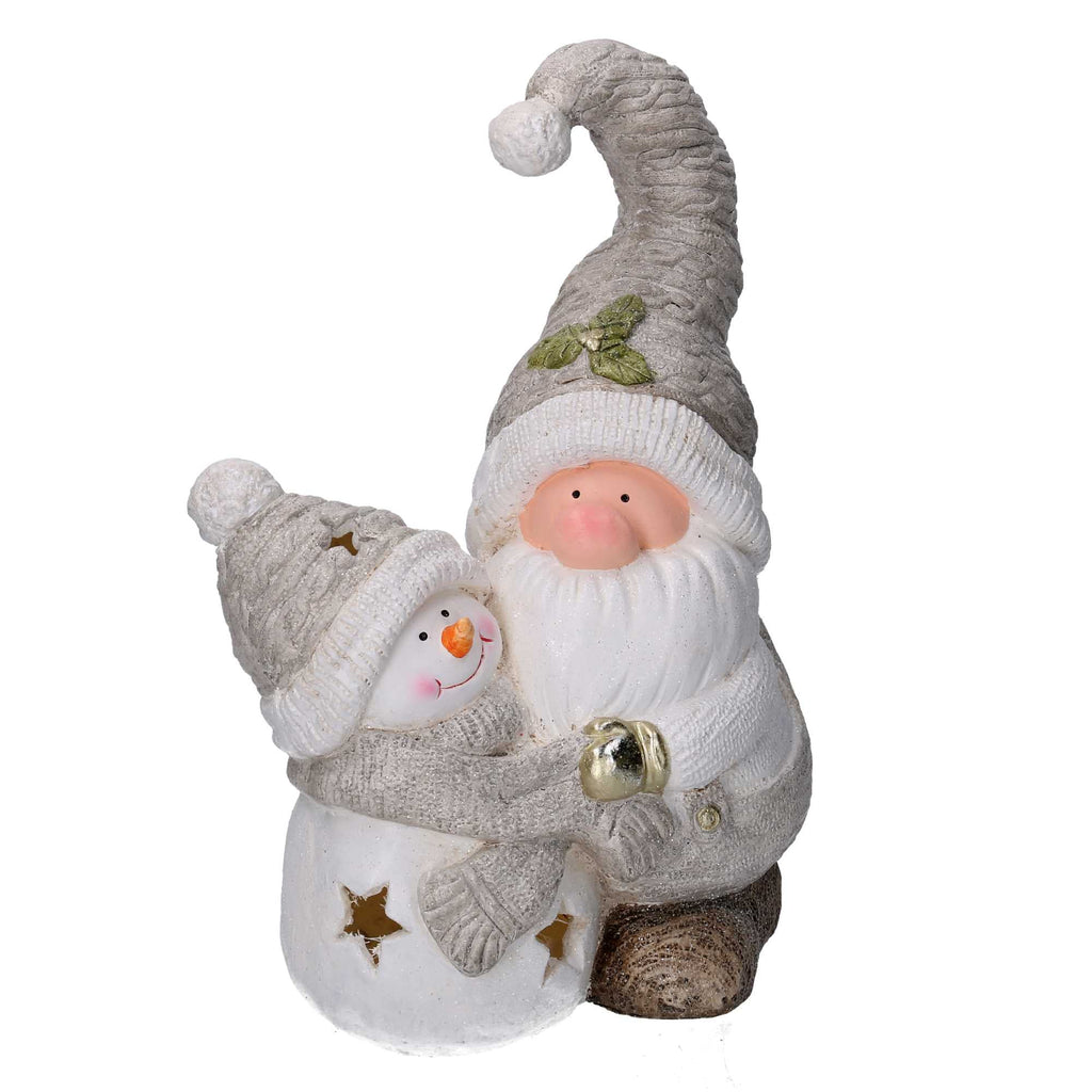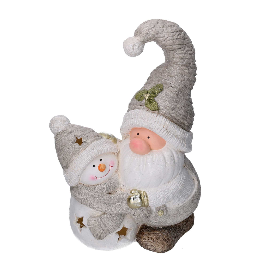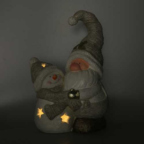 Gnomo resina e pupazzo di neve grigio con led cm 27,5x18,5xh42