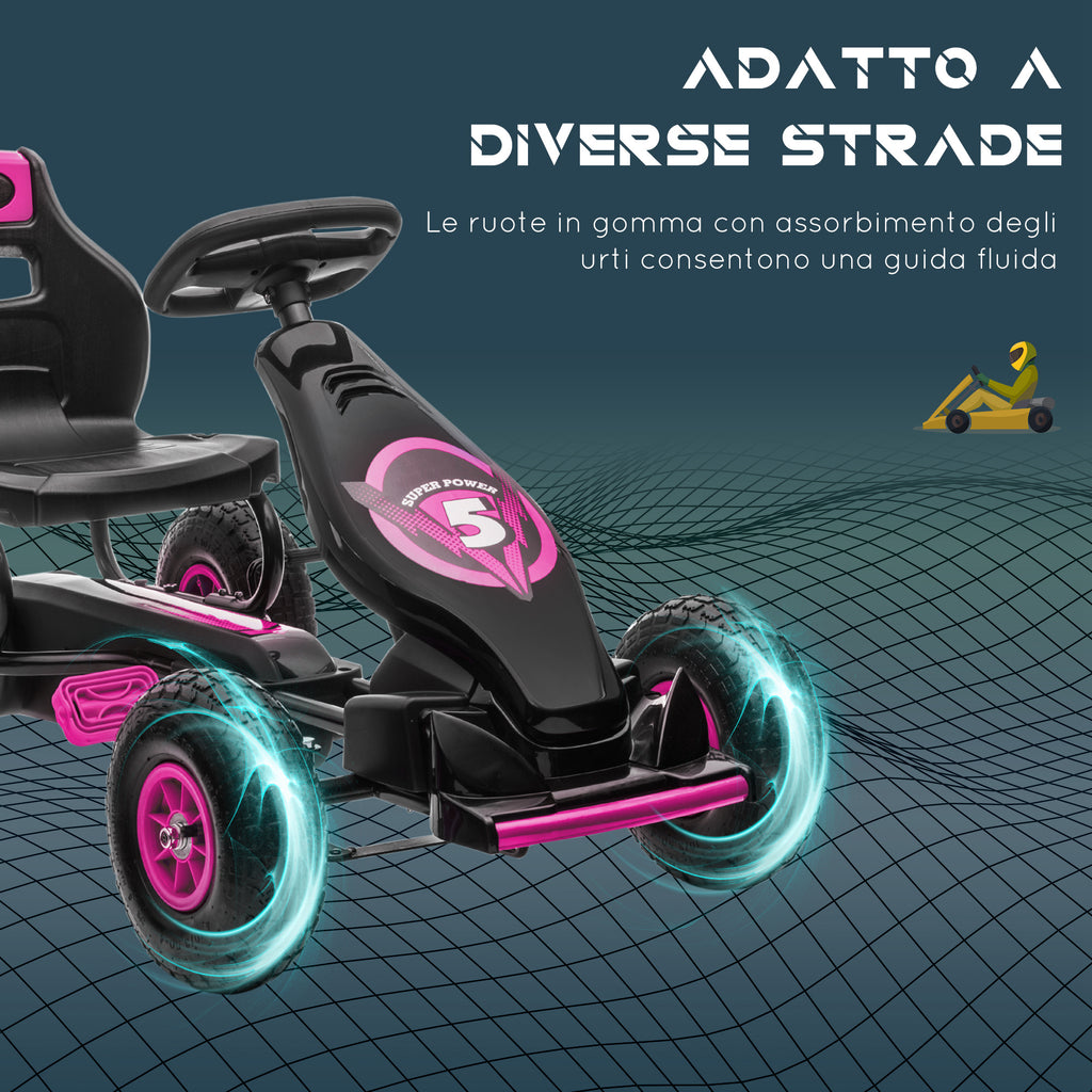 Go Kart a Pedali per Bambini 5-12 Anni 121x58x61 cm in Metallo e PP Rosa e Nero