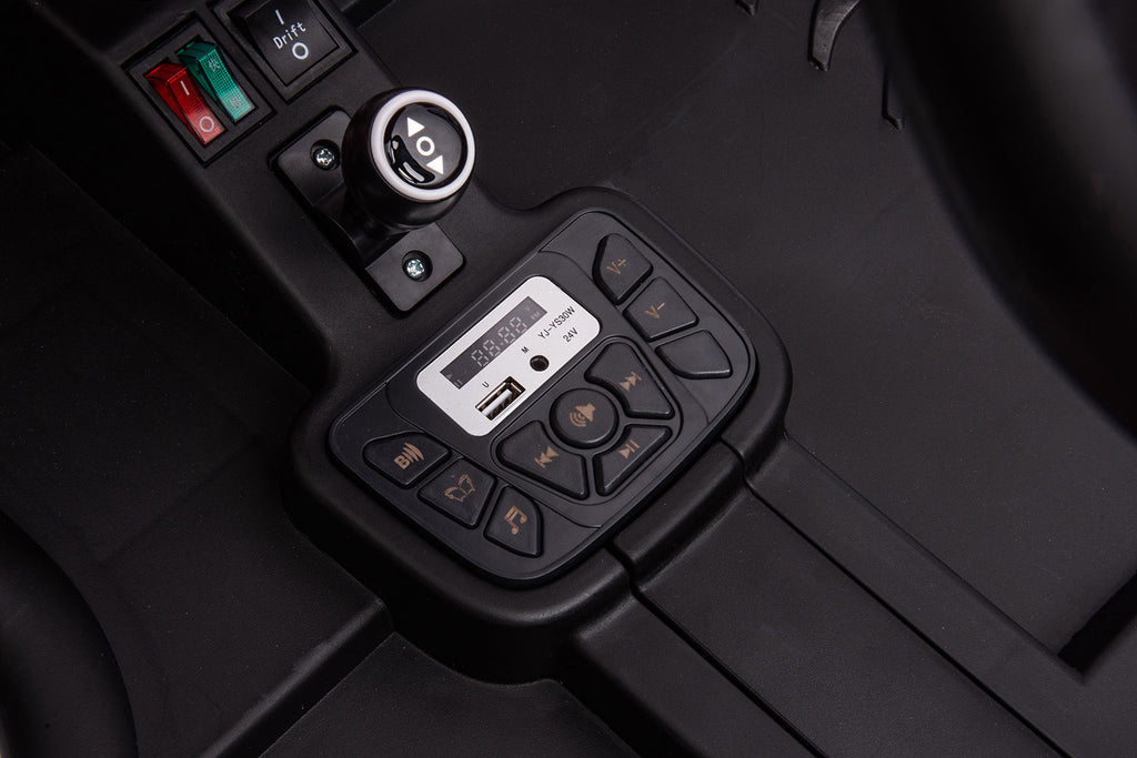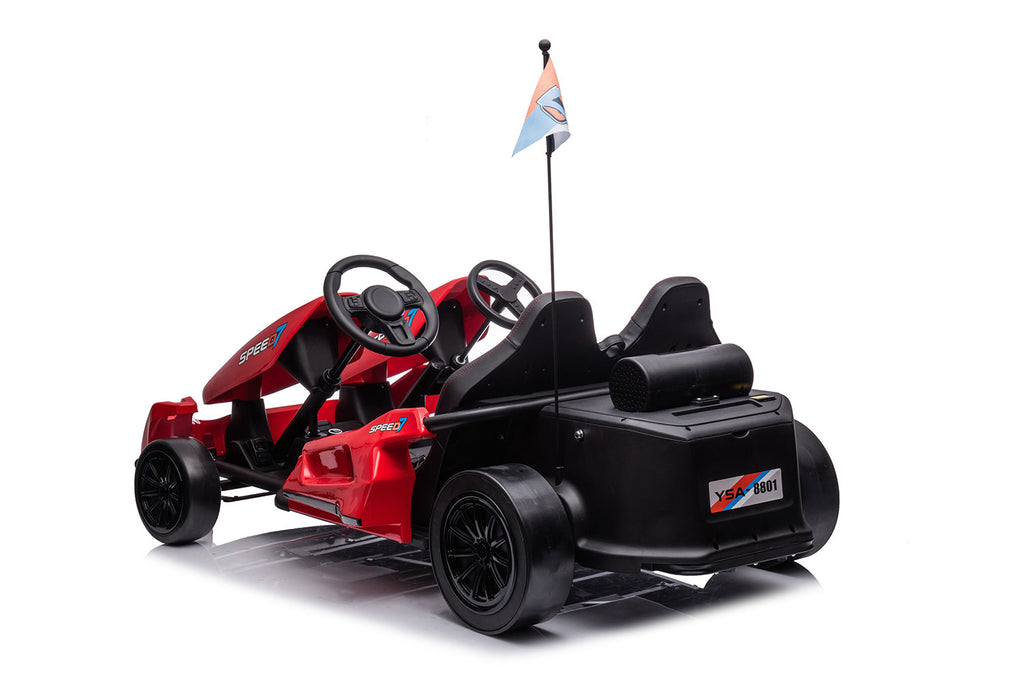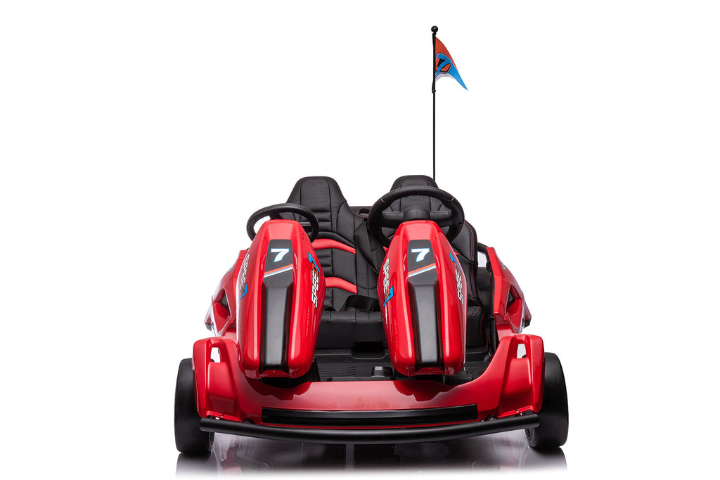 Scopri il fantastico go kart elettrico a 2 posti, il veicolo ideale per i bambini che amano l’avventura e il divertimento in sicurezza! Con dimensioni di 163x92x66 cm e un peso di 44 kg, questo go kart è perfetto per due piccoli piloti pronti a vivere emozioni uniche. Dotato di batteria potente da 24V14AH, garantisce prestazioni durature e adrenaliniche. Le ruote di alta qualità per drifting permettono di eseguire manovre divertenti e spettacolari, mentre il cambio avanti/indietro e il pedale acceleratore e freno a pedale offrono un controllo semplice e realistico. La dashboard multimediale con luci a LED, suoni e musiche predefinite rende ogni corsa ancora più coinvolgente. I due sedili in vera pelle assicurano comfort e stile, mentre il tasto per drifting e la doppia velocità aggiungono un tocco di adrenalina. Perfetto per i bambini che vogliono vivere emozioni di guida autentiche, questo go kart elettrico a 2 posti è la scelta ideale per divertimento sicuro e avventuroso!