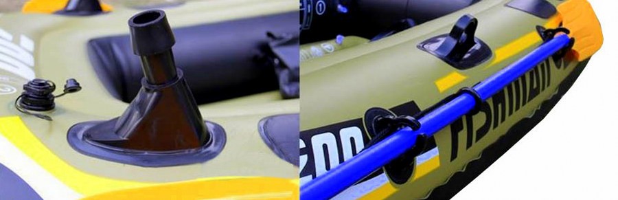 Interamente in PVC ad Alta Resistenza pesa solo 12.5Kg, si trasporta comodamente nel bagagliaio dell'auto ed è perfetto per chi cerca un'tender gonfiabile leggera ed economica da usare nel week end per pescare, grazie al supporto per canne da pesca di serie.