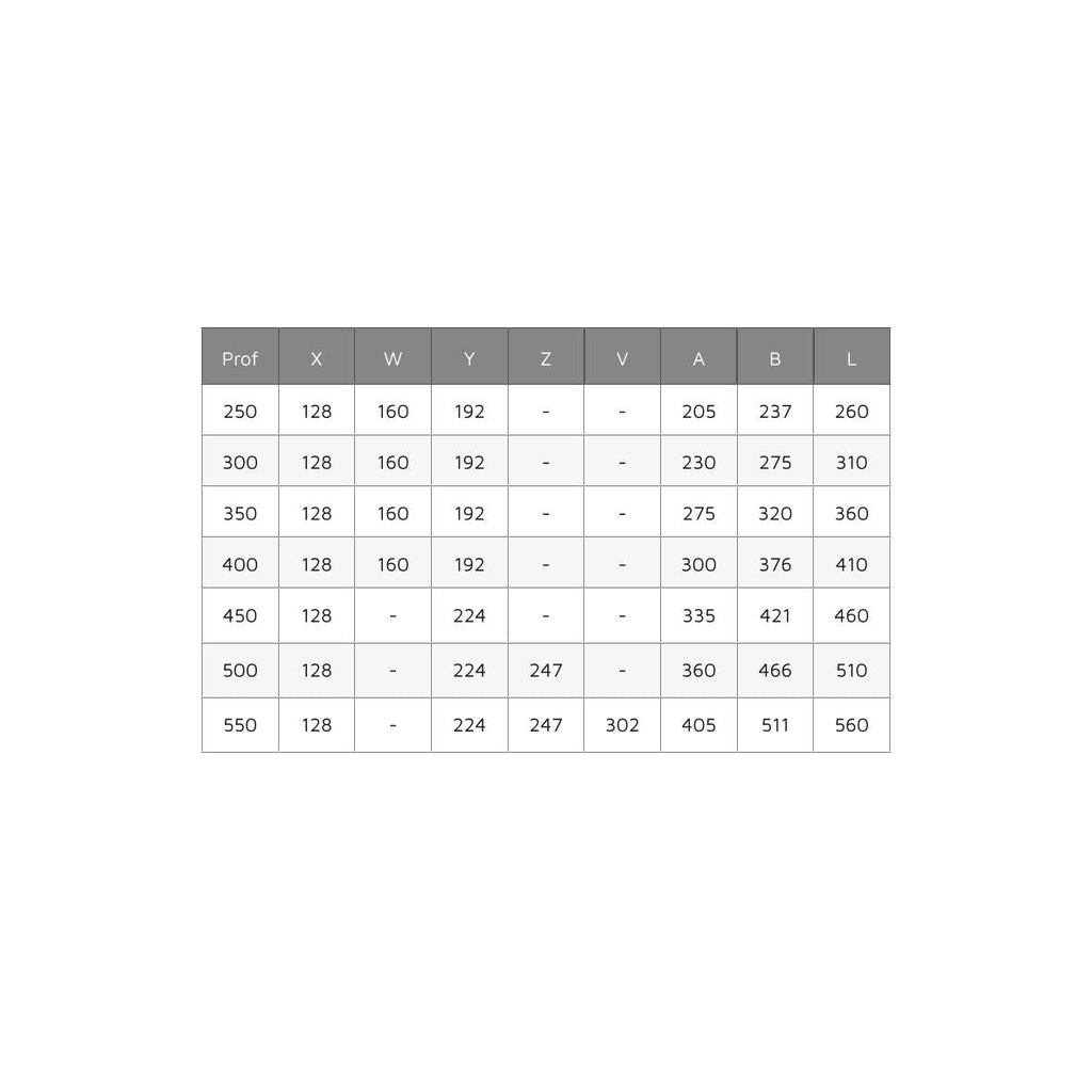 - Guide con estrazione totale per cassetti con profondità 250 mm.