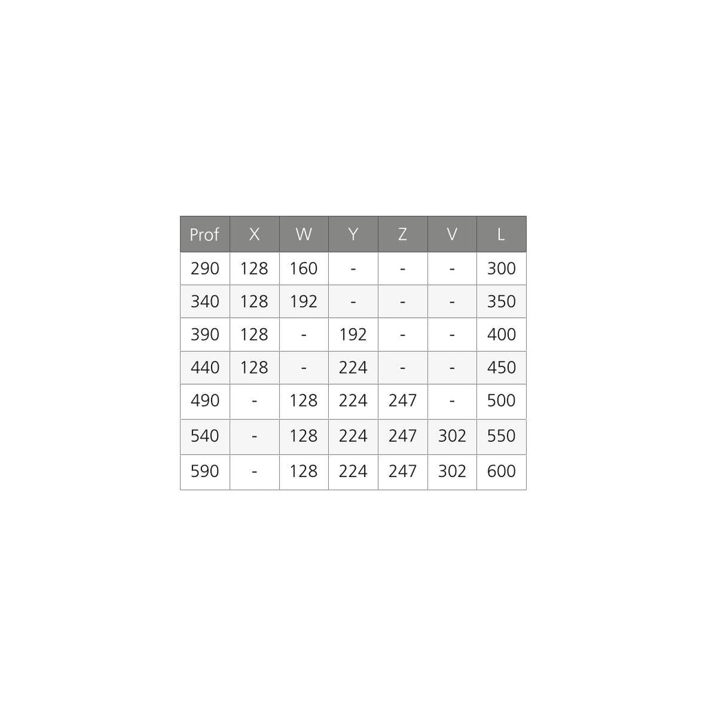 - Guide con estrazione totale per cassetti con profondità 340 mm.