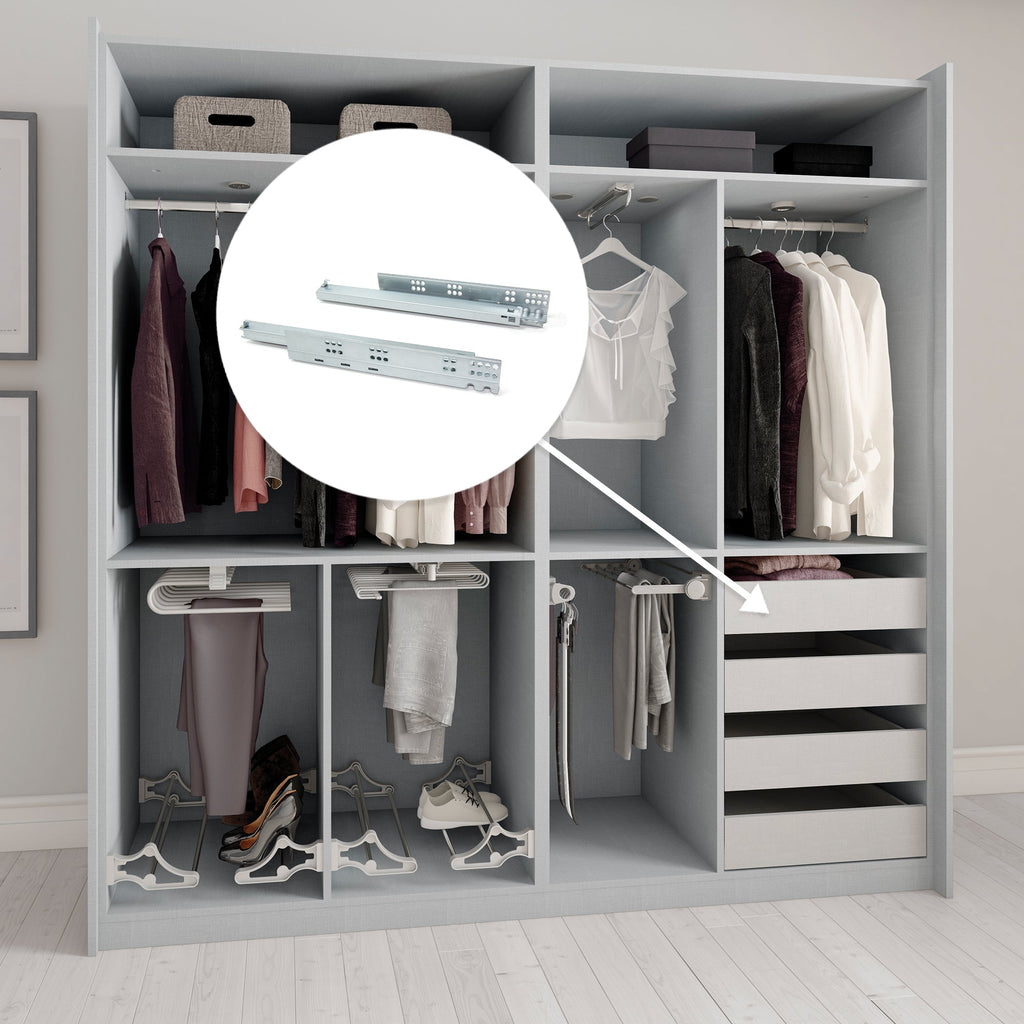 Guide a Scomparsa Slippe per Cassetti ad Estrazione Totale P440 Zincato Bianco Acciaio Emuca