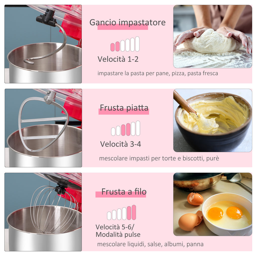 Impastatrice Planetaria 5,5 Litri 1200W Ciotola in Acciaio Inox Rossa
