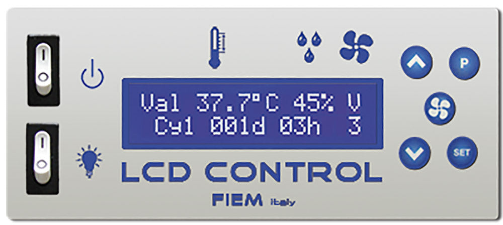- La Centralina con display Lcd permette una facile impostazione e lettura dei parametri temperatura e umidità.