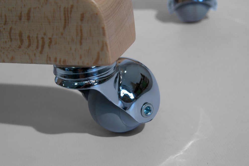 Mimmo è un elegante e funzionale indossatore in legno di faggio massello che presenta una pratica vaschetta svuota tasche e un comodo poggia scarpe. La sua superfice in legno è colorata con colori naturali all'acqua e protetta da vernice acrilica opaca per garantire una perfetta resistenza e preservare la sua bellezza nel tempo. Dotato di ruote piroettanti cromate e di un facile montaggio, Mimmo è un prodotto di design interamente realizzato in Italia.