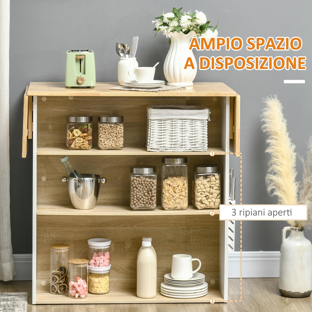 Sempre a corto di spazio per il bancone e di spazio per riporre i tuoi utensili in una cucina compatta? Questo mobile da cucina fa proprio al caso tuo. Questa isola per cucina è dotata di un'anta a ribalta che offre spazio extra, adattandosi per la preparazione dei pasti, mangiare e anche per lavorare. Tutto si organizza alla perfezione all'interno di questo mobile, rivelandosi un prodotto salvaspazio ideale.