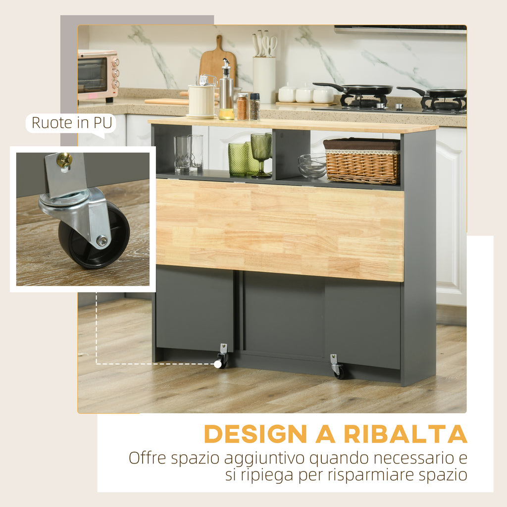 Isola da Cucina con Piano a Ribalta 110x66x97 cm in MDF e Legno Grigio