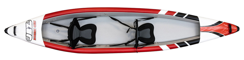 JBAY.ZONE 425 è il Kayak biposto interamente in PVC laminato con tecnologia DROP-STITCH ad alta pressione, utilizzata sia per il fondo che per la struttura, per rigidità e supporto al peso senza paragoni. Il kayak 425 misura 425x78cm ed è dotato di un'ottima stabilità primaria per via del fondo piatto, il Kayak 425 è comodo e spazioso, può trasportare due utenti adulti per un peso complessivo massimo di 205Kg. Il Kayak 425 JBAY.ZONE è corredato da due sedute semi-rigide di alta qualità, più comode e resistenti rispetto alle sedute gonfiabili. Pompa, borsa trasporto e due pagaie a doppia pala completano il set di accessori previsto.