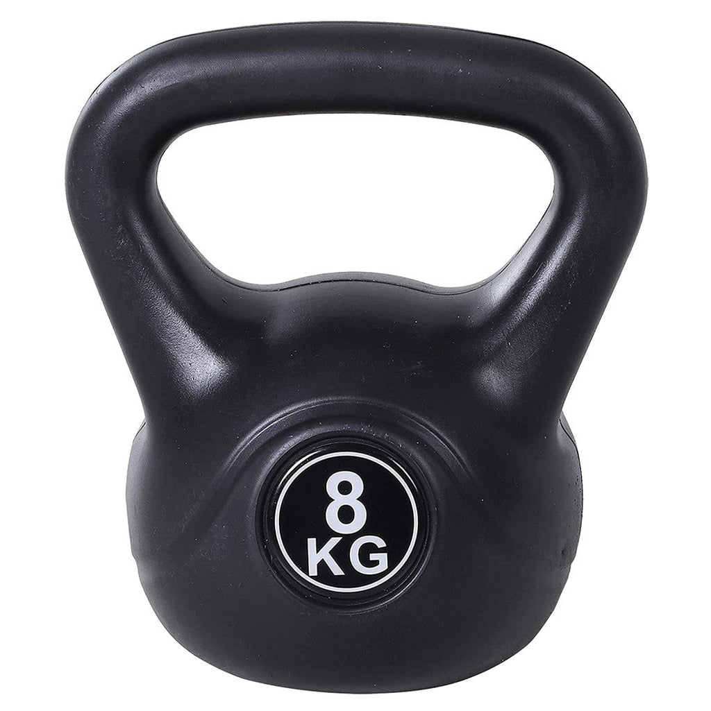 Kettlebell Fitness 8 Kg in PVC con Sabbia e Maniglia Nero