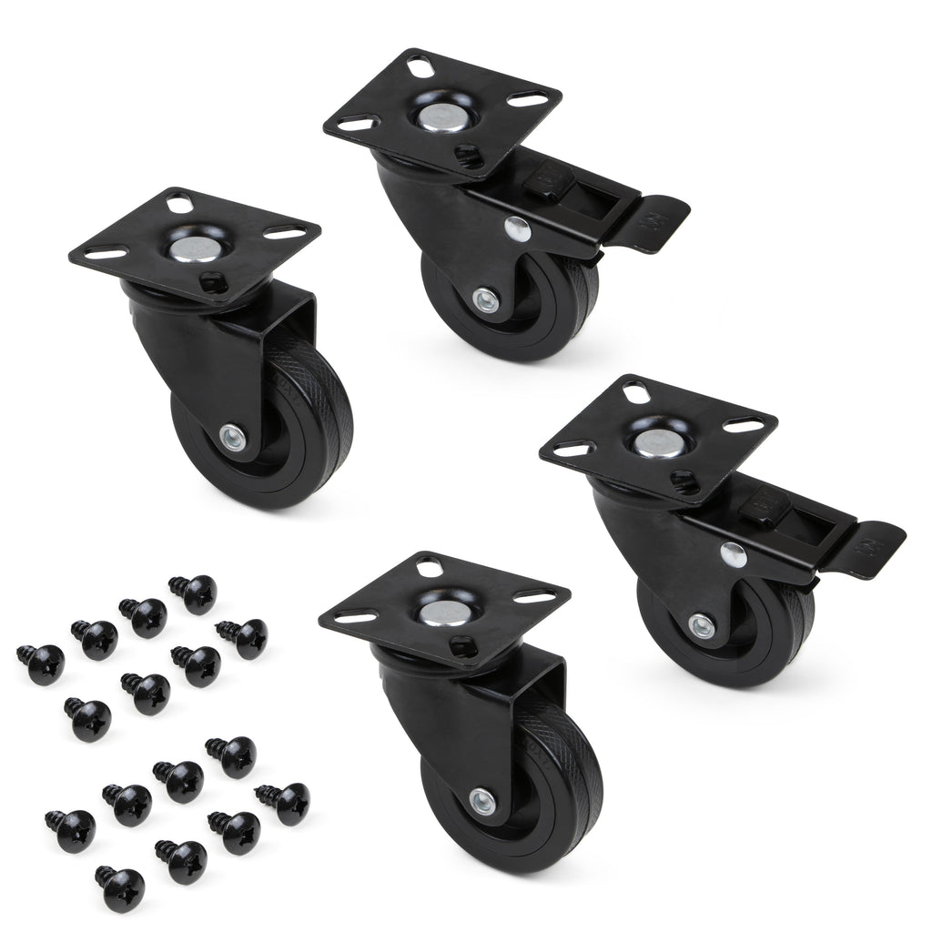 - Set di 4 rotelle per mobile: 2 ruote con freno e 2 ruote senza freno.