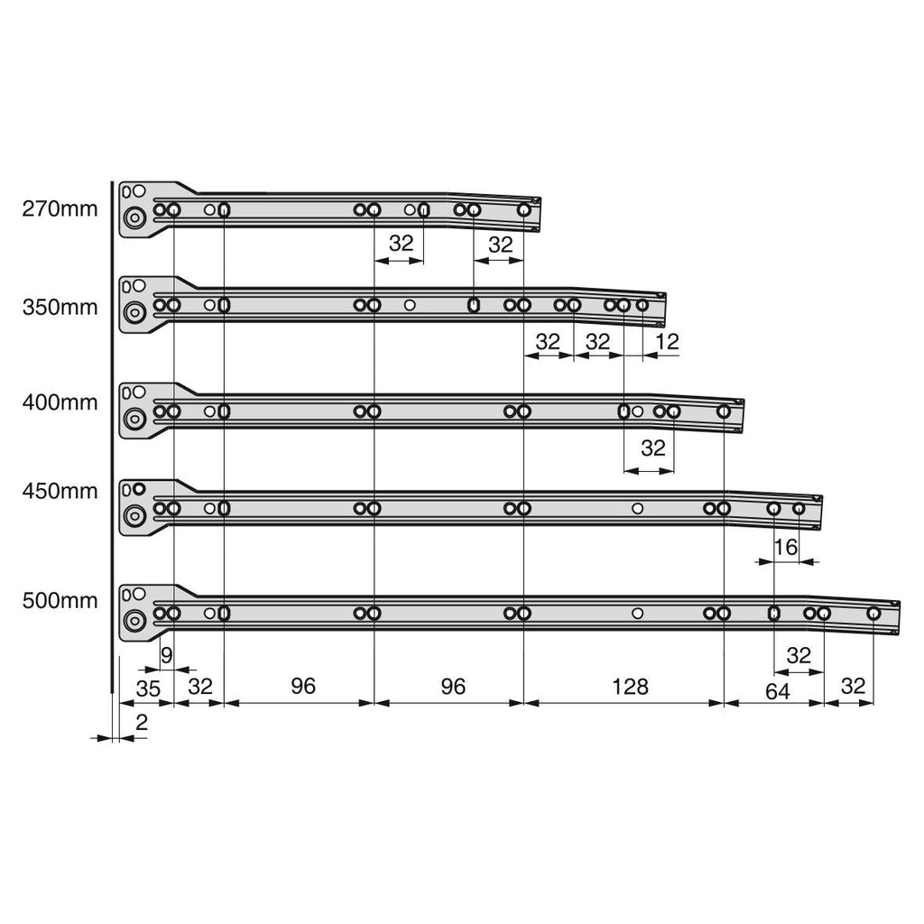 Il kit per cassetto da cucina e bagno Ultrabox è composto da profili lateriali in acciaio con guide a rotella, progettate con finiture verniciate in alluminio. È la migliore opzione con il miglior rapporto qualità -prezzo per cassetti da cucina e bagno. Ogni kit include tutti gli accesori per il montaggio di un cassetto: profili laterali, set di guide con caduta e agganci anteriori per il frontalino. Necessita di pannelli tagliati a misura per il fondo e la schiena oltre al frontalino del cassetto. Gli aggangi di fissaggio del frontalino permettono la regolazione eccentrica ± 2 mm verticale. Questi agganci sono già montati sul lato della sponda in acciaio.