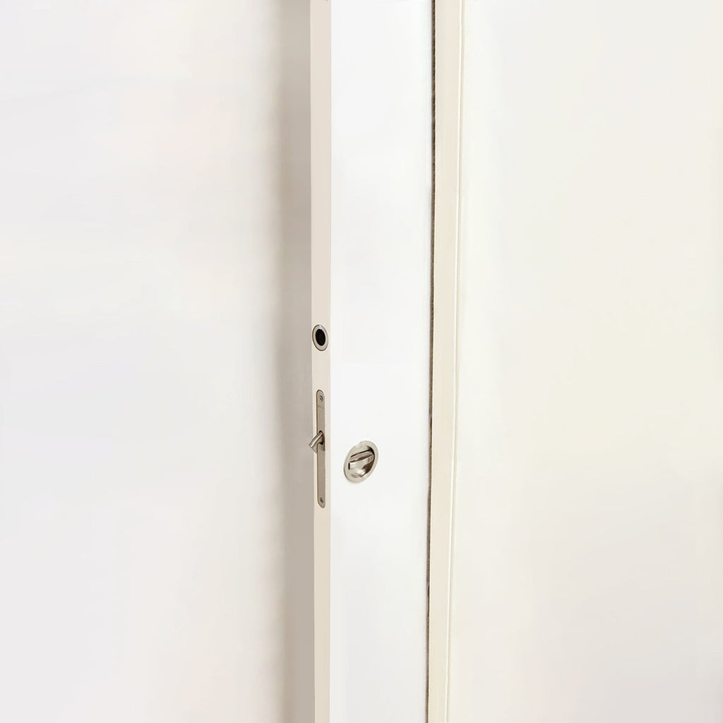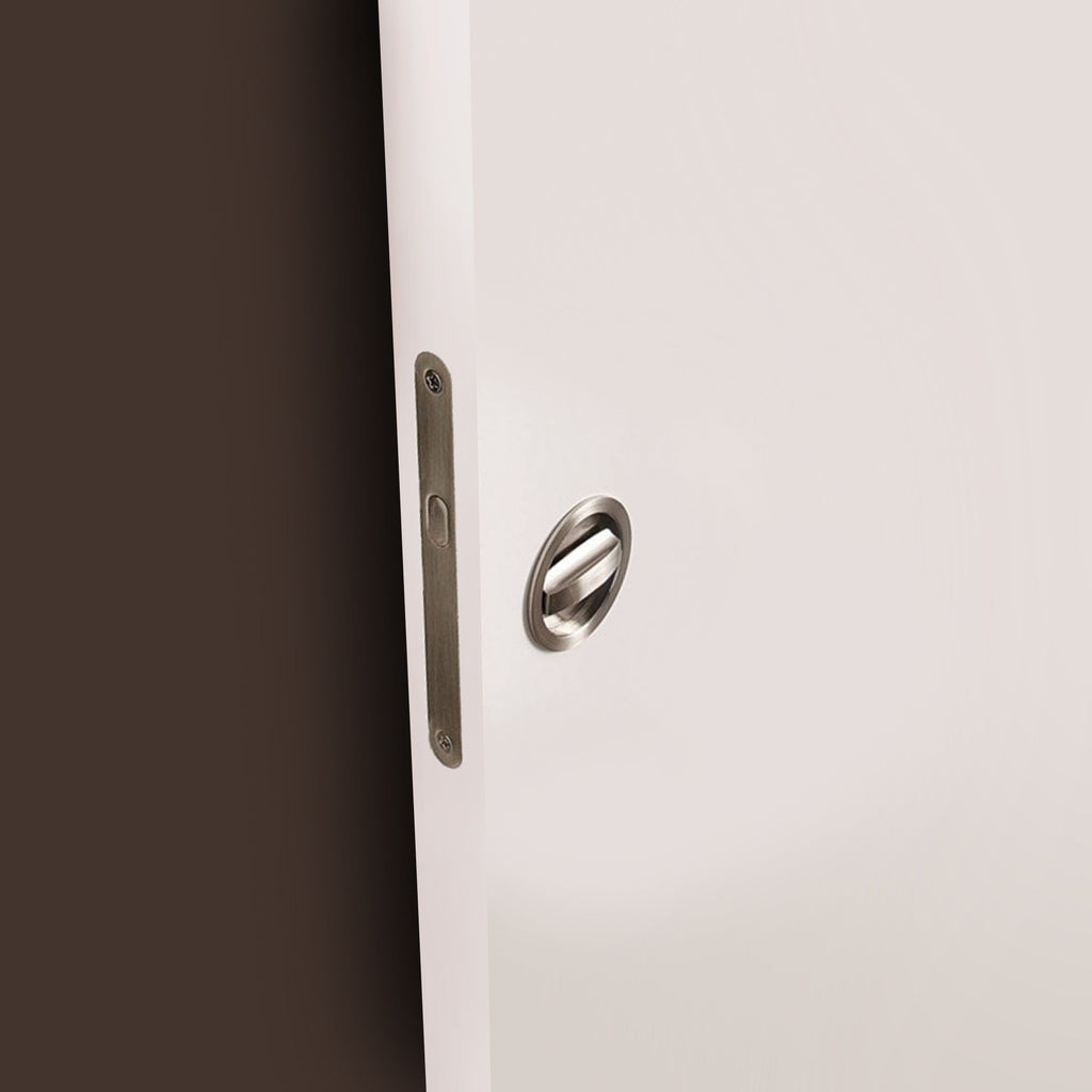 - Kit di serratura con nottolino rotondo da 57 mm di diametro per porte scorrevoli.