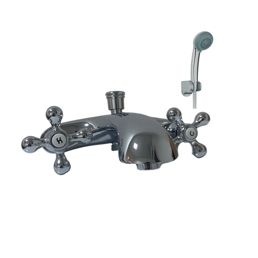 Il rubinetto vasca Lecce barocco cromo è caratterizzato da una finitura brillante che conferisce eleganza e stile. Realizzato in ottone di alta qualità, questo rubinetto è dotato di doppio comando per regolare con precisione il flusso dell'acqua. La doccetta in plastica garantisce un'esperienza di doccia confortevole e piacevole. Il supporto a muro per il soffione e il flessibile sono inclusi, offrendo praticità e facilità di installazione. Con dimensioni compatte di 7x18x19 cm, questo rubinetto è perfetto per bagni di varie dimensioni.
