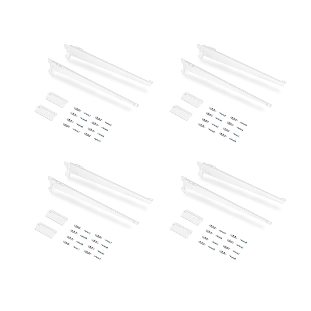 - Si compone di otto piastre di fissaggio e quattro set di supporti (destro e sinistro) per l'installazione di quattro ripiani in legno.