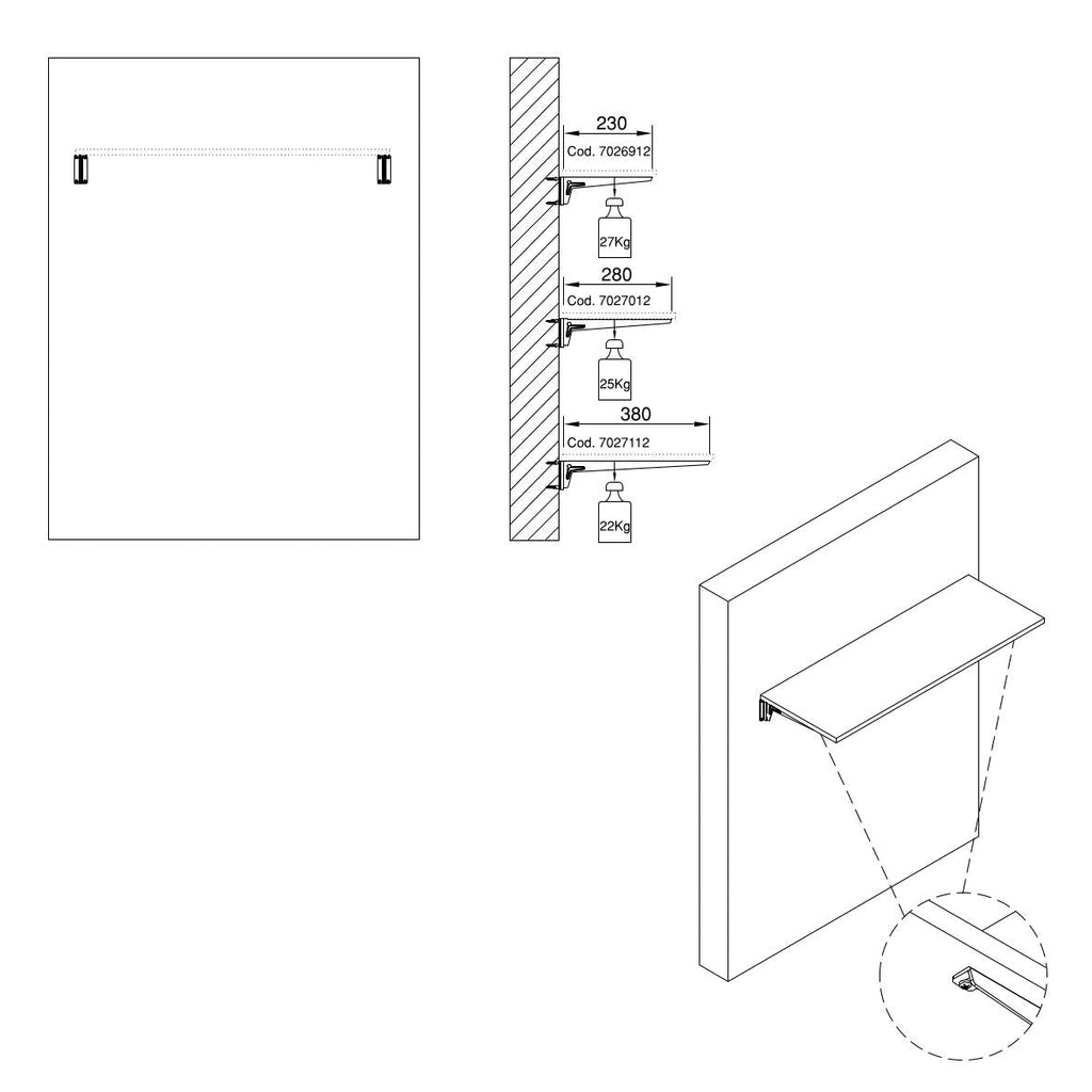- Le staffe lunghe 280 mm supportano un carico di 23 kg per ripiano.